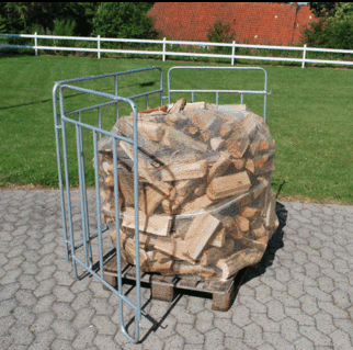 Siderne af stativet løsnes, nu er det nemt og hurtigt at skifte til den næste sæk. Effektiv fyldning brændesække til 1,0 m3 passer til Euro palle str. 80 x 120 cm.